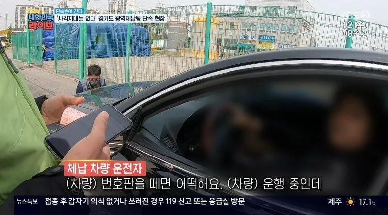 운전자가 체납액을 내지 않자 단속팀은 차량 번호판을 영치했으며, 이에 운전자는 “번호판을 떼면 어떡해요”라고 항의했다.
