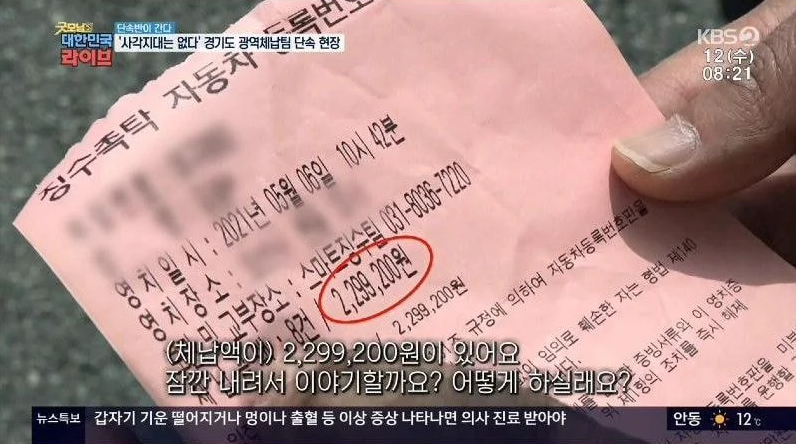 KBS프로그램 ‘대한민국 라이브’에서는 ‘단속반이 간다 사각지대는 없다 경기도 광역체납팀 단속 현장’편이 방송되었다.
