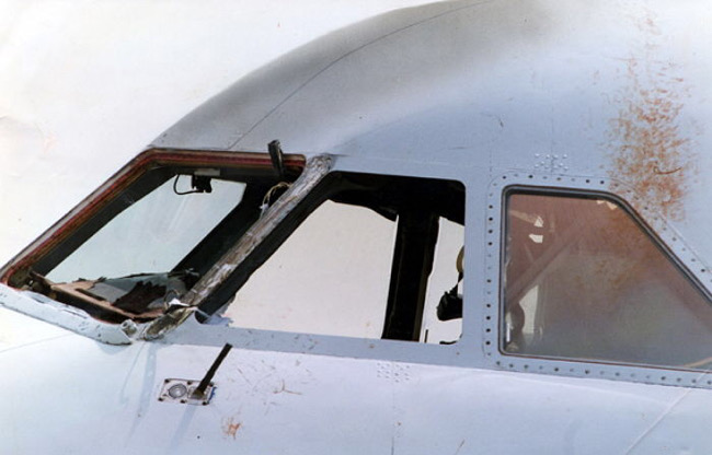 이에 조종사 팀 랭커스터 (Tim Lancaster)는 손쓸 사이도 없이 몸의 절반이 넘게 빠져나가며 창틀에 무릎 아래만 걸쳐진긴급한 상황이 일어났다.