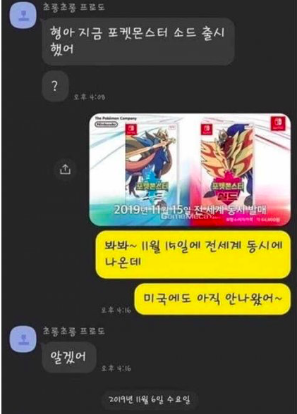 출시 이전부터 오랜 기간 동안 포켓몬스터 소드를 목 빠지게 기다려 온 동생과, 그런 동생의 투정을 모두 들어주는 형의 보기 좋은 모습이 그려졌다.