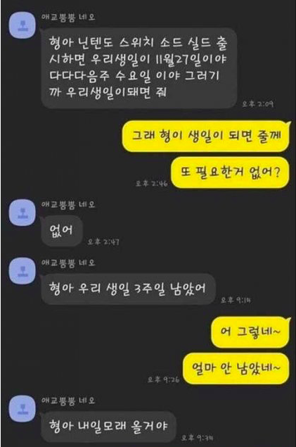 19살 어린 동생은 ‘포켓몬스토 소드’ 닌텐도 게임을 가지고 싶어하는 것 같았다.