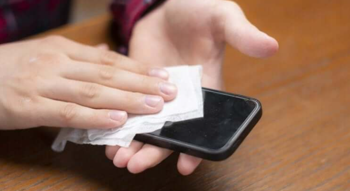 살균 티슈로 스마트폰을 닦는 것은 괜찮을 수 있는데, 이에 대해서는 휴대폰 제조업체에 확인한다.
