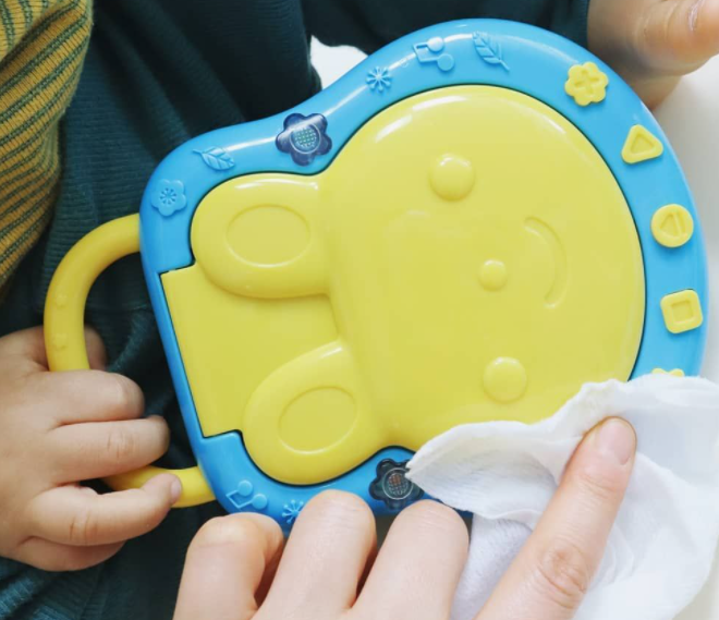 아이들은 아무것이나 입에 넣기 때문에, 살균티슈나 향균티슈로 장난감을 닦지 않아야 하는 이유이다.