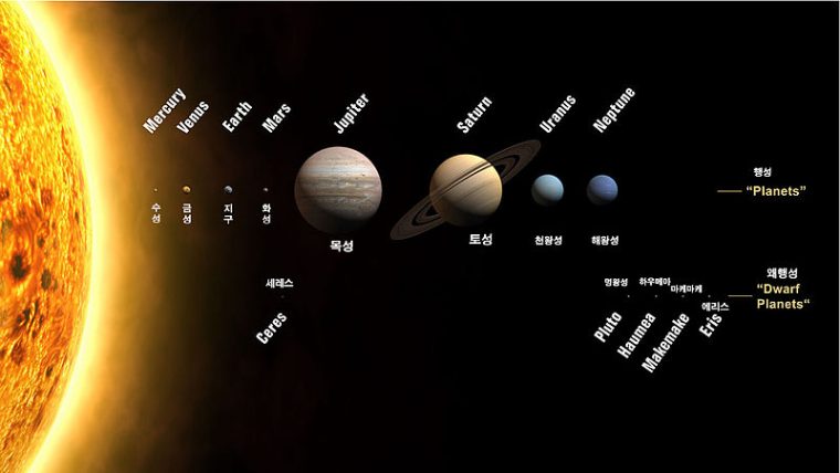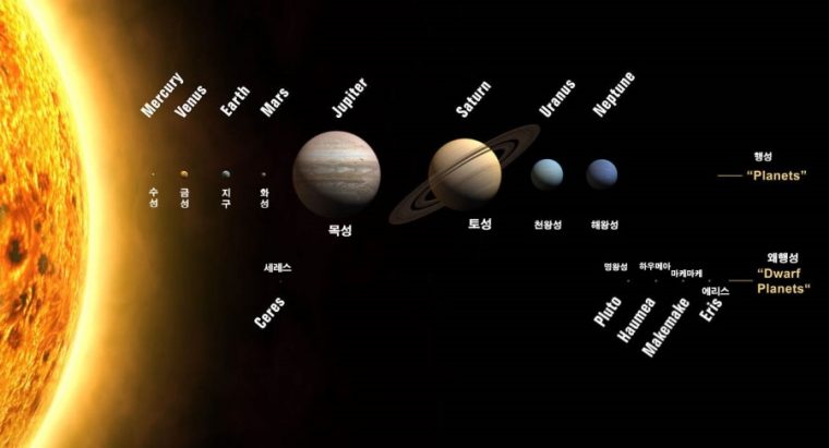 수성, 금성, 지구, 화성, 목성, 토성, 천왕성, 해왕성이 있다.