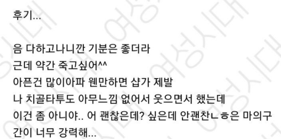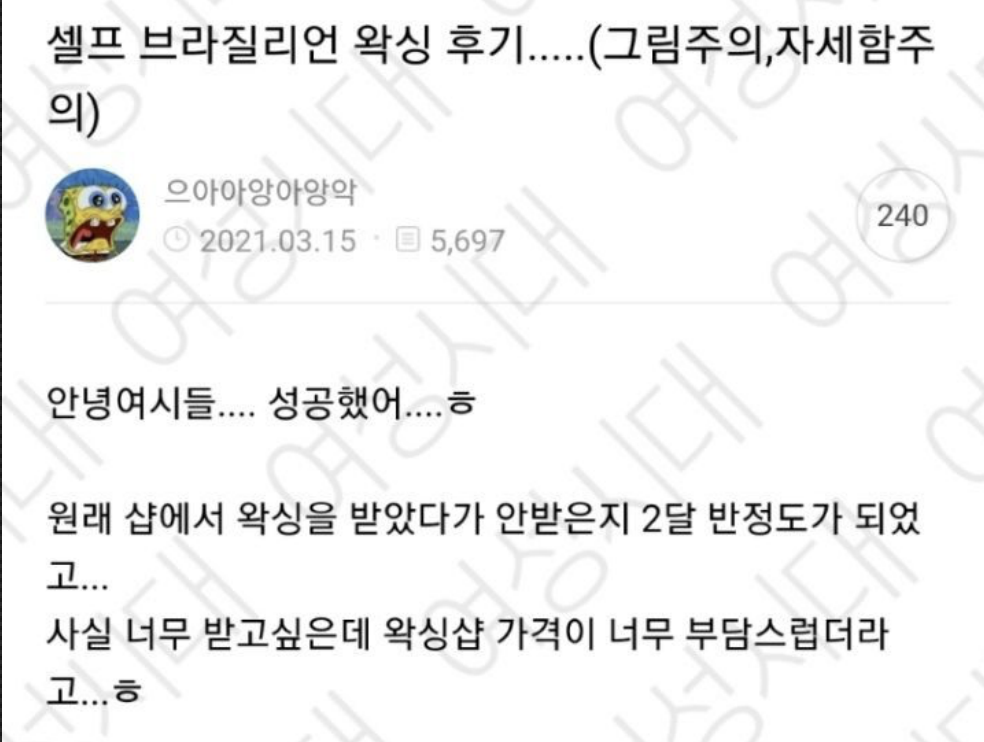 나머지 누워서 마저 왁싱 받는 동안에도 너무 죄송한 마음 분한마음 챙피한마음 같은 여러 부정적인 느낌으로 인해 나도모르게 눈물을 흘려야 했습니다….