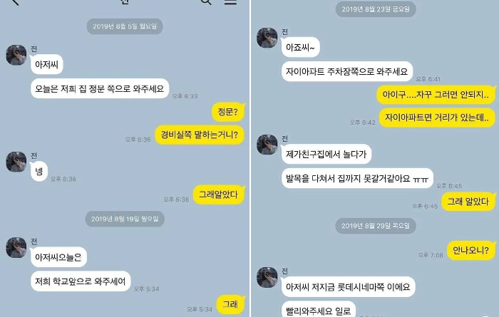 약 2주가 지난 후 학생은 다시 버스 기사에게 다른 곳으로 와달라고 메시지를 보냈다.