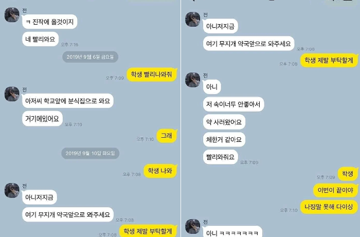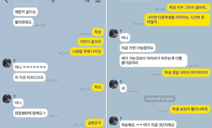 최근 한 학원버스 기사와 학생이 나눈 카톡 내용이 모두를 충격에 빠트렸다.