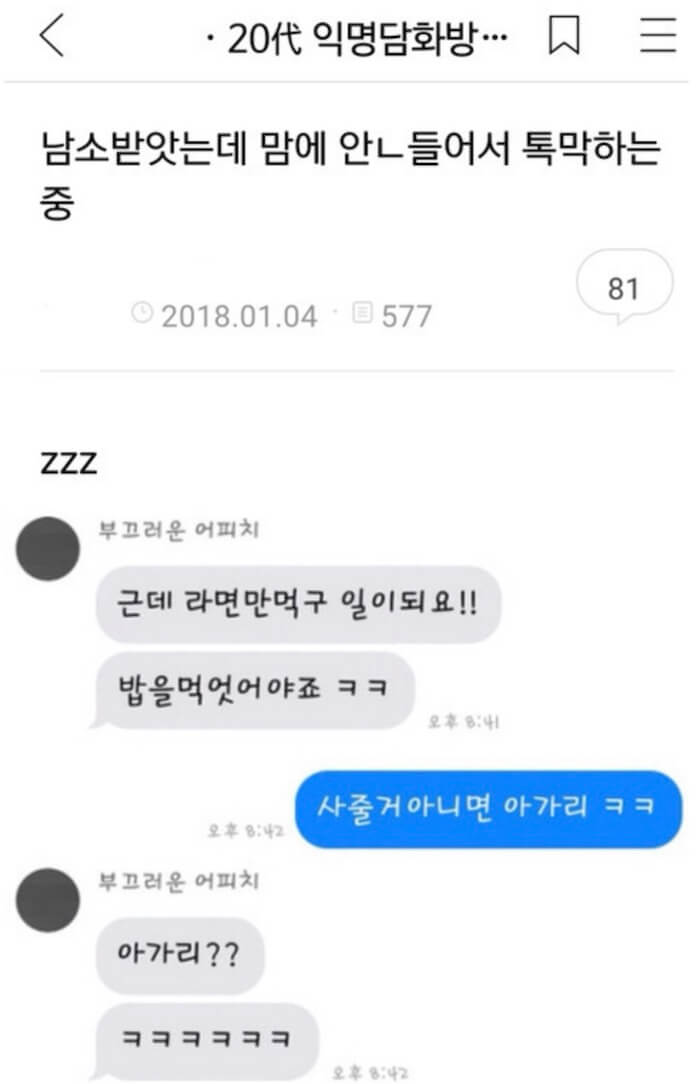 함께 올라온 사진들에는 대한민국 네티즌들의 웃긴 ‘썰’을 담은 짤들이 담겨 있었다.