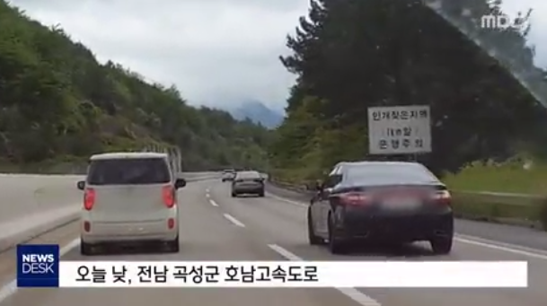 지난 24일 MBC 뉴스데스크에서는 전남 곡성로 순천방향 호남 고속도로에서 한 남성이 달리는 차량에서 나와 맞은편 차량에 위험하게 엉덩이를 흔드는 모습을 보도했다.