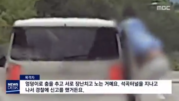 목격자는 “엉덩이로 춤을 추고 서로 장난치고 놀더라. 석곡터널을 지나서 경찰에 신고를 했다”라며 당시 상황을 생생히 전달했다.