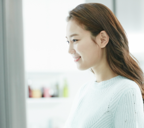 입을 활짝열고 가지런한 이를 모두 드러내며 웃는 것이 매력적이다.