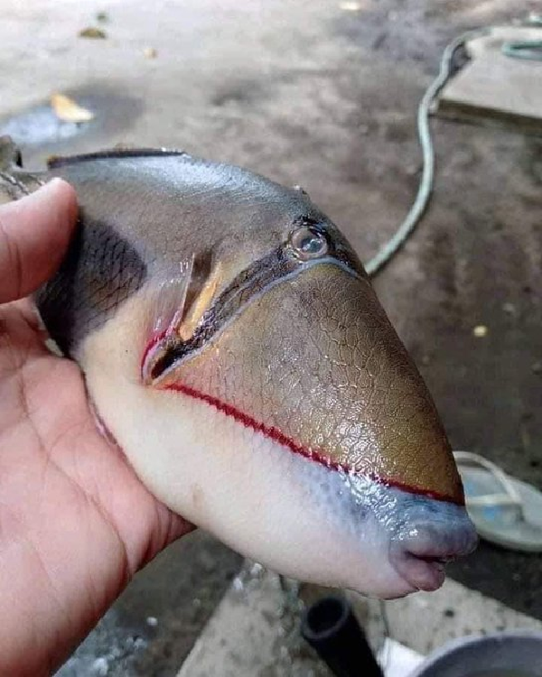 공개된 사진 속 물고기는 사람의 치아와 유사한 하얀 이빨과 분홍색 입술을 가지고 있다.