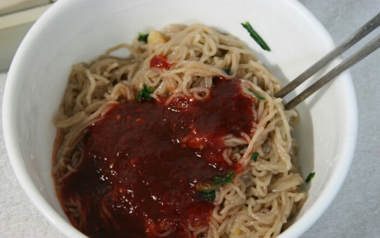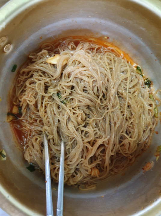 비빔냉면 소스에서는 약간 찰비빔면과도 비슷한 맛이 나는데, 처음 나왔을땐 너무 맵고 마늘향이 강했었다.