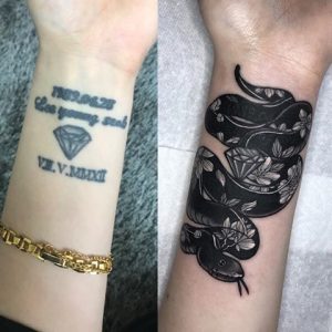 타투커버업은 기존의 문신에 새로운 문신을 덧씌우는 기법으로 골칫거리 문신을 새로운 문신으로 바꾸어 새로운 분위기를 연출할 수 있다.