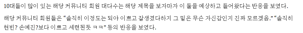 둘다 턱이 짧은 편이며 힙한 분위기에 스타일이 좋고 옷 잘입는다고 한다.