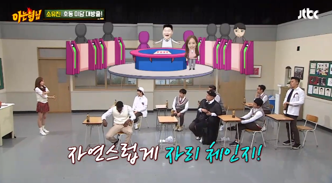 강호동은 다른 이에게는 이 사실을 숨긴 채, 자연스럽게 소유진과 맞은편 게스트의 자리를 바꿔줬다.