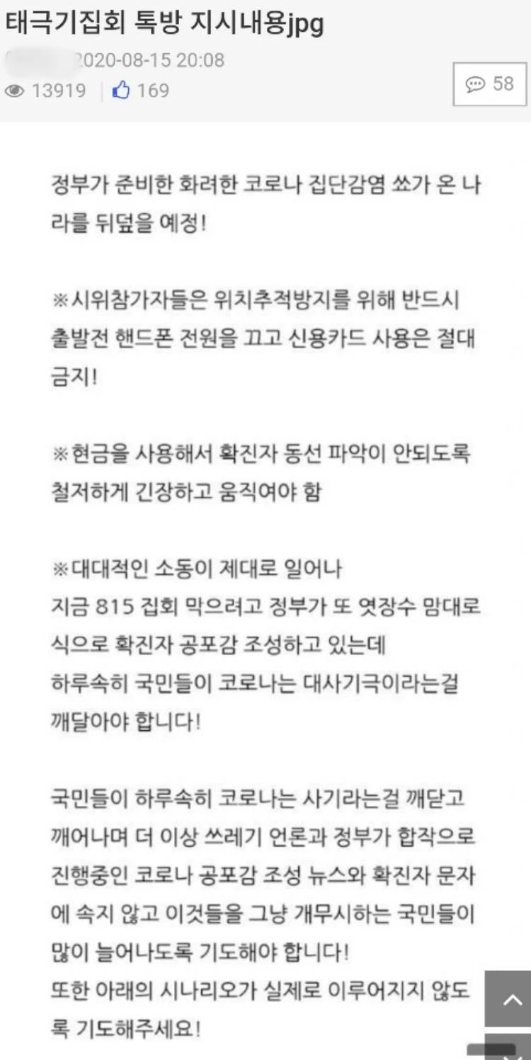 그러한 가운데 지난 15일 딴지일보에는 “태극기집회 톡방 지시 내용”이라는 글이 올라왔다.