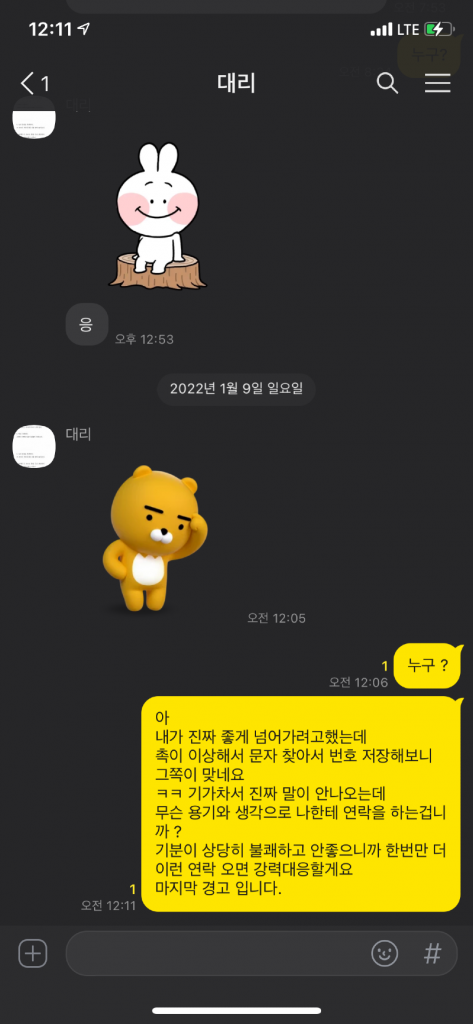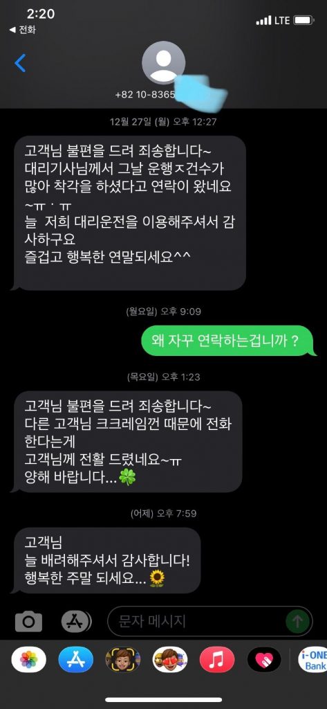 대리기사는 직원인 척 하며 다른 핸드폰으로 사과 연락을 했으며, 이에는 일방적인 메세지 내용이 담겨있었다.