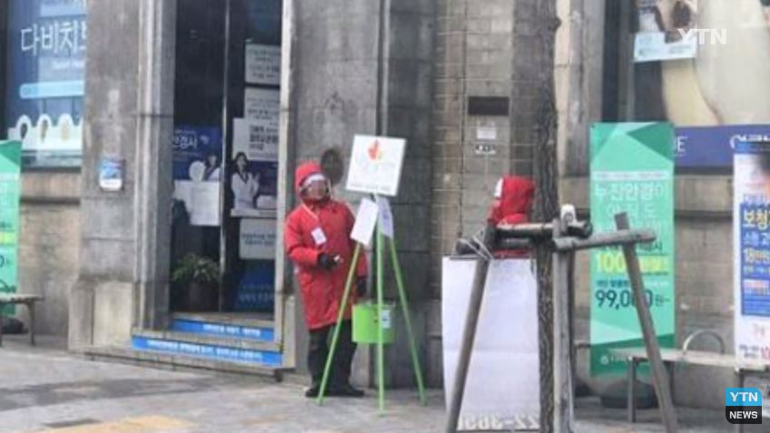 사진처럼 일부 기부단체가 구세군과 유사한 모습으로 냄비를 걸어놓고 기부를 받고 있었다.