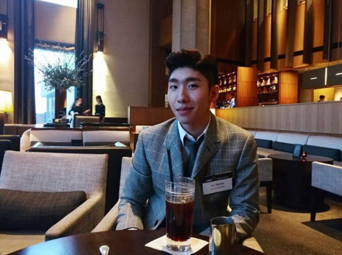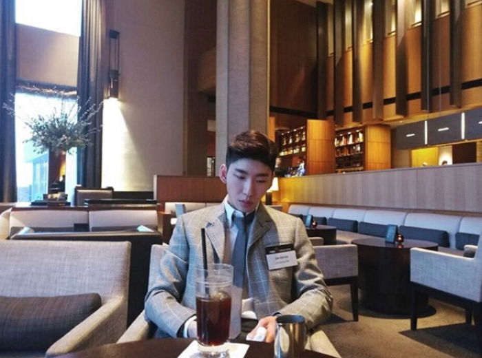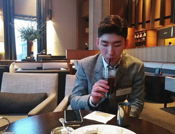 사진 속 임효준은 서울 시내 한 호텔의 라운지 바를 찾아 디저트를 먹고 있는 모습을 보이고 있다.