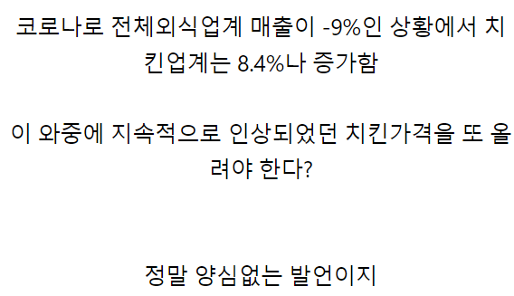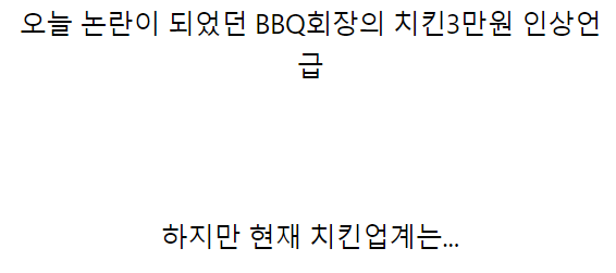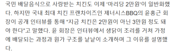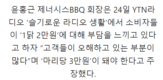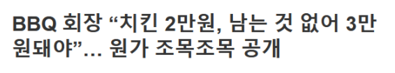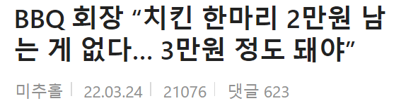 BBQ 회장, “치킨 한마리 2만원? 손해보는 장사다.. 3만원은 되어야한다.. 이유는” BBQ 회장 “치킨 한마리 2만원 남는 게 없다… 3만원 정도 돼야” ADVERTISEMENT ADVERTISEMENT ADVERTISEMENT ADVERTISEMENT ADVERTISEMENT ADVERTISEMENT ADVERTISEMENT ADVERTISEMENT ADVERTISEMENT ADVERTISEMENT ADVERTISEMENT [저작권자 NEWSNACK/ 무단복사, 무단전재 및 재배포 금지 (위반 시 법적조치)]