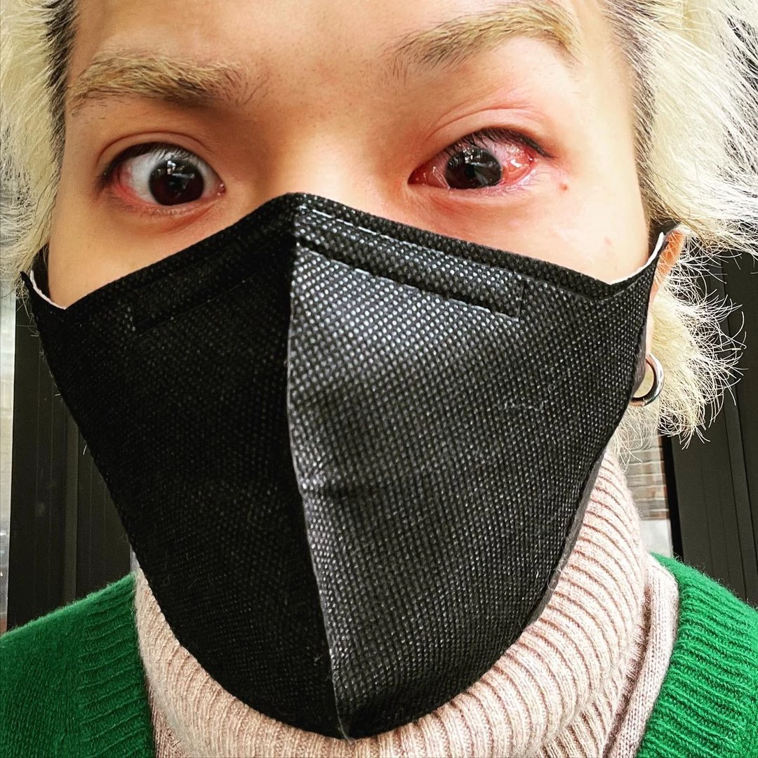 눈이 빨개진 자신의 모습이 애니메이션 속 혈귀를 연상시켜 이러한 게시물을 올린 것으로 추측된다.