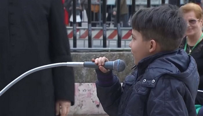 프란치스코 교황의 눈길을 사로 잡은 건 쭈뼛쭈뼛 대며 마이크를 잡은 한 어린 소년 에마누엘(Emanuele)이었다.