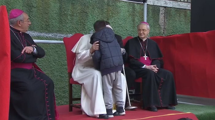 교황은 그런 아이를 꼭 안아주며 몇 마디를 건넸다.