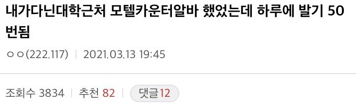 지금부터 ‘내가 다닌 대학 근처 모텔 카운터 알바 했었는데..’로 시작하는 글을 함께 살펴보자.