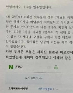 A씨는 “관리사무소에서 심각성을 인지하지 못하고 경찰에 신고하기보단 쉬쉬 하는 모습을 보이고 있다”며 “입주민의 이름이 유출돼 남이 인지하고 있는 것은 매우 위험한 일”이라고 지적했다.