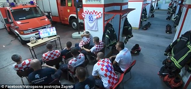 자그레브 소방서의 대원들은 다함께 모여 8강전을 지켜보고 있었다.