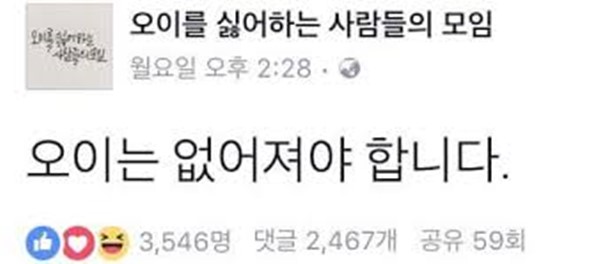 한때 페이스북에서 화제를 모았던 ‘오이를 싫어하는 사람들의 모임’페이지는 개설되자마자 10만 명에 가까운 사람들이 좋아요를 누르는 등 폭발적인 인기를 누리기도 했다.