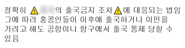 해당 글에는 홍콩특별행정구 입법회가 홍콩 사법부의 결정 없이도 입경사무처장의 판단에 따라 그 누구든 홍콩에 출입국하는 모든 승객과 승무원, 배편과 항공기에 대한 여행수단을 통제할 수 있게 권한을 부여하는 법개정을 실시하였다는 내용이 담겨있었다.