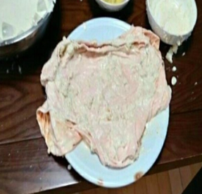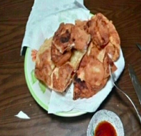 속옷을 튀김 반죽에 묻힌 다음 기름에 튀겨낸 뒤 가위로 먹기 편하게 잘라놓기까지 한 모습이었다.