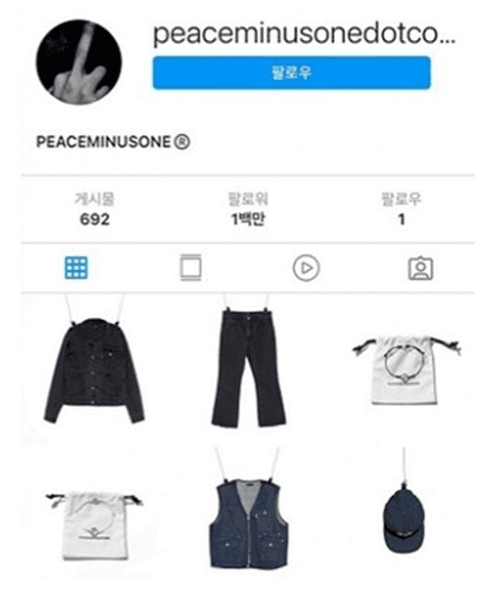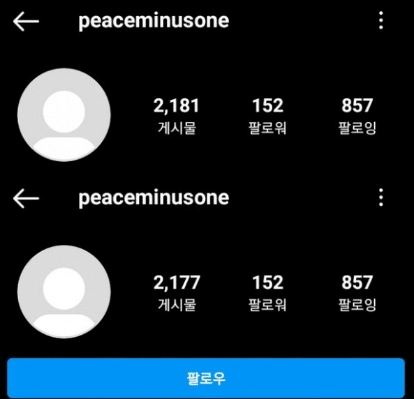 앞서 이 계정은 검정색 배경에 로고 ‘peaceminusone’가 적힌 사진이었다.