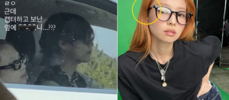 게시 된 사진에는 뷔와 제니를 닮은 듯한 남녀 한 쌍이 차에서 찍힌 모습이었다.