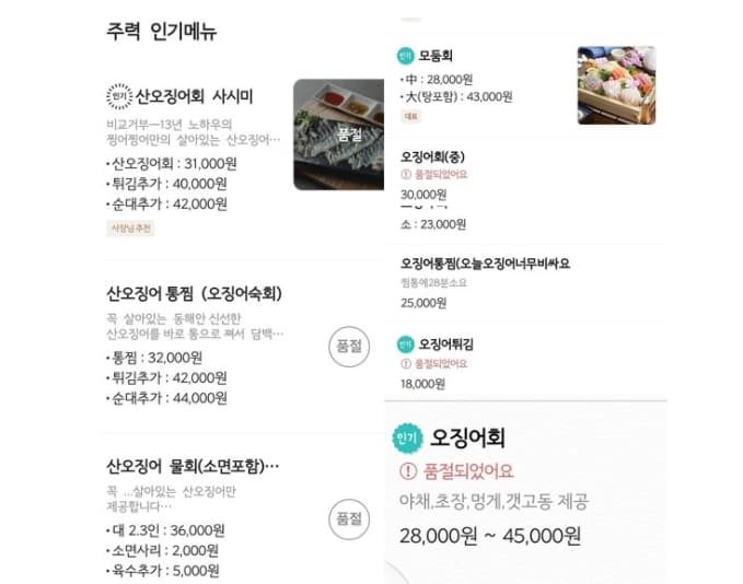 최근 횟집 곳곳에 ’오징어회‘ 품절을 알렸고, 대형마트에서도 오징어 가격이 올라갔다.