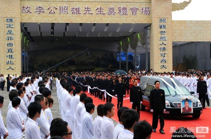 그의 장례식은 대만 장례 풍속상 저명한 사람들처럼 수십일 간 수 많은 사람들의 조문을 받은 후 47일만에 장례식이 열려 타이중 화장장에서 불교식으로 화장됐다.