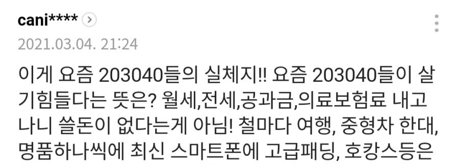 글 내용에는 어느 네티즌이 2030세대들에게 전하고 싶은 말이라며 덧글을 작성했는데 그 내용은 이러하다.