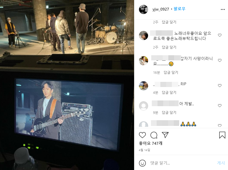 엠씨더맥스 멤버 제이윤의 마지막 인스타.