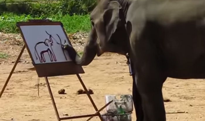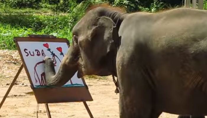 지난 24일, 한 온라인 매체에서는 태국 치앙마이(Chiang Mai) 코끼리 캠프의 코끼리 수다(Suda, 4)가 그림을 그려내는 모습을 공개했다.