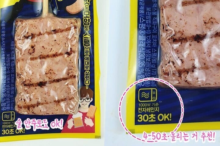 이 스팸은 1000W 전자레인지에 30초 돌릴 것이 권장되고 있다.