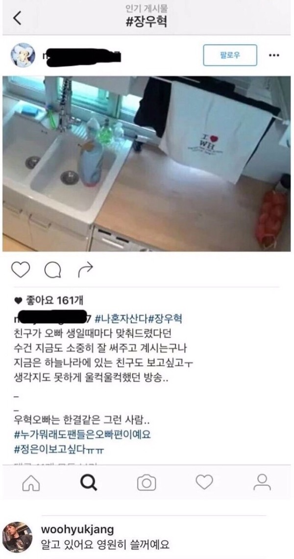 이에 장우혁은 댓글로 “알고 있어요. 영원히 쓸거예요”라며 팬에 대한 애틋한 애정을 표현해 많은 이들의 감동을 자아냈다.