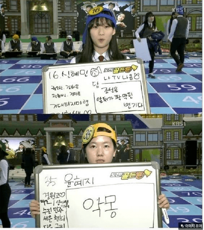 한 온라인 커뮤니티에서 KBS1 ‘도전!골든벨’의 과거 방송 캡쳐가 올라와 관심을 끌었다.