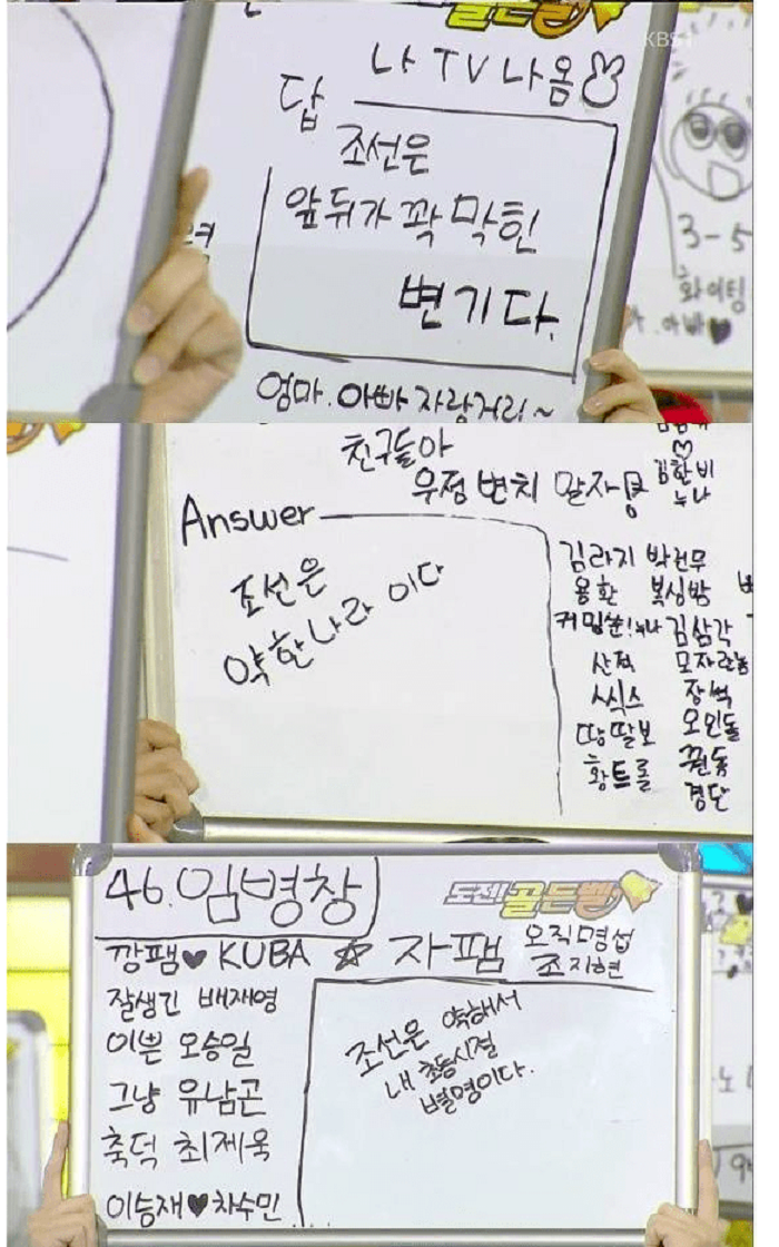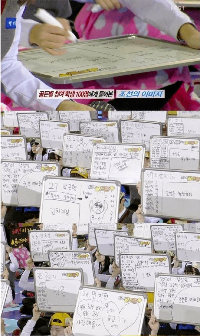 해당 내용은 골든벨 참여 학생 100으로부터 들은 조선의 이미지에 관한 것이었다.