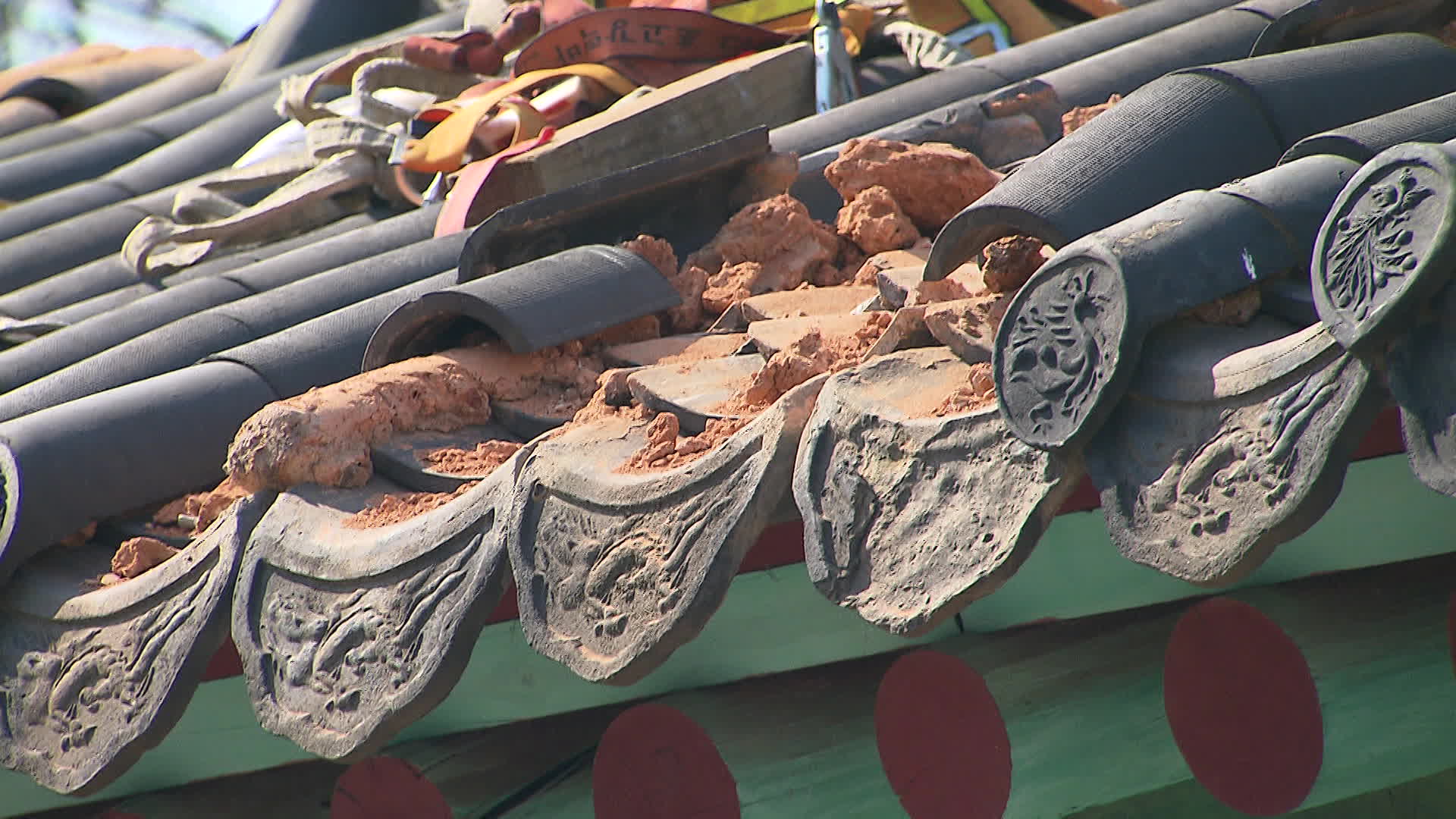 사다리차가 동삼문 지붕 위로 떨어지며 일부가 파손되는 일이 벌어졌다.