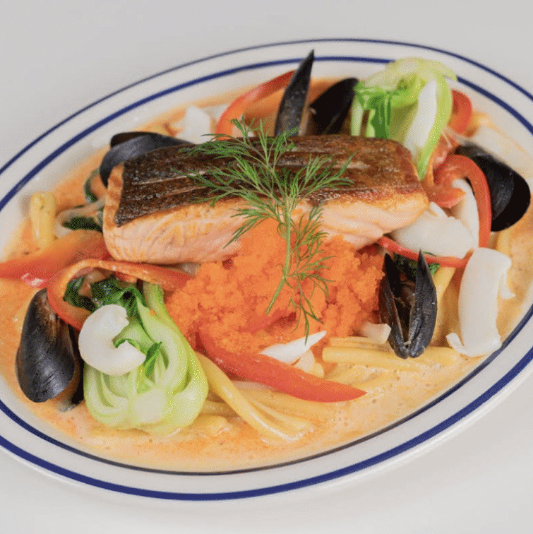 이어 연어 포케, 통골뱅이 냉파스타, 로스트 하프 치킨 등은 2만 원 대이고, 스테이크 중 돈마호크 스테이크는 3만 6000원, 연어 스테이크는 3만 2000원이다.