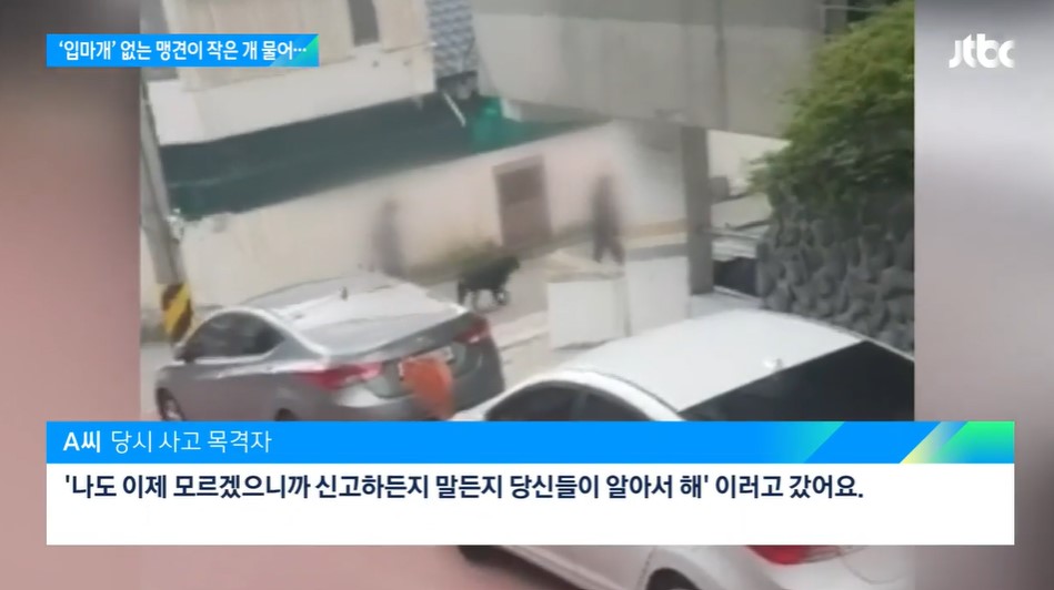 JTBC는 서울의 한 주택가에서 벌어진 맹견 사고에 대해 보도하며 CCTV 영상과 목격작의 진술 등을 전했다.