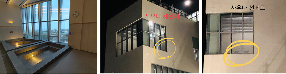 하지만 마지막 날 산책을 하다가 사우나쪽 창문을 보니 외부에서 사우나 내부가 다 보인다는 점을 알게 되었습니다.