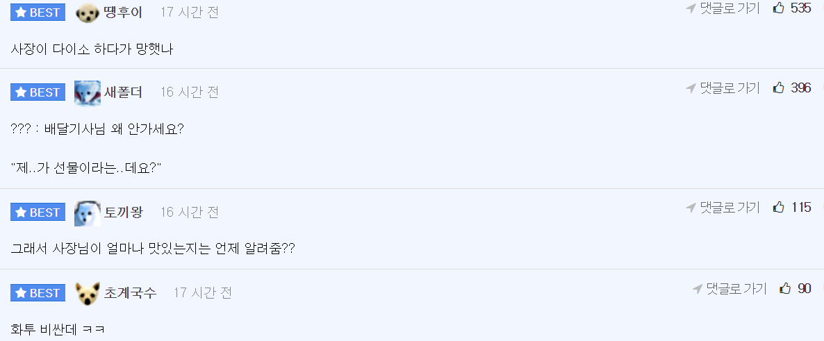 게시글 내용에는 배달 앱에 업로드된 냉면집이 공개되었는데 독특한 마케팅으로 큰 화제가 되고 있다.